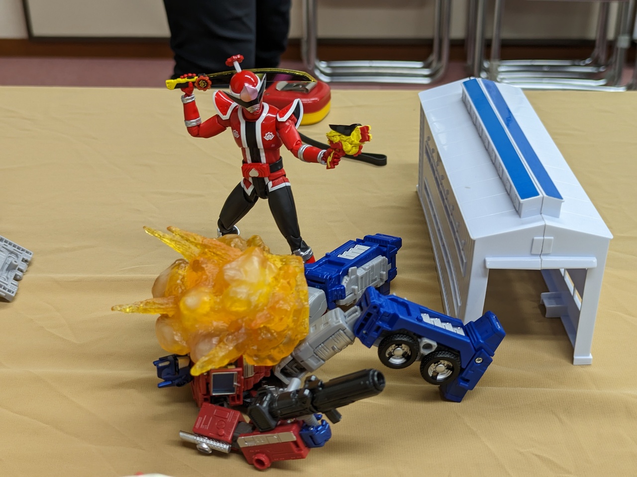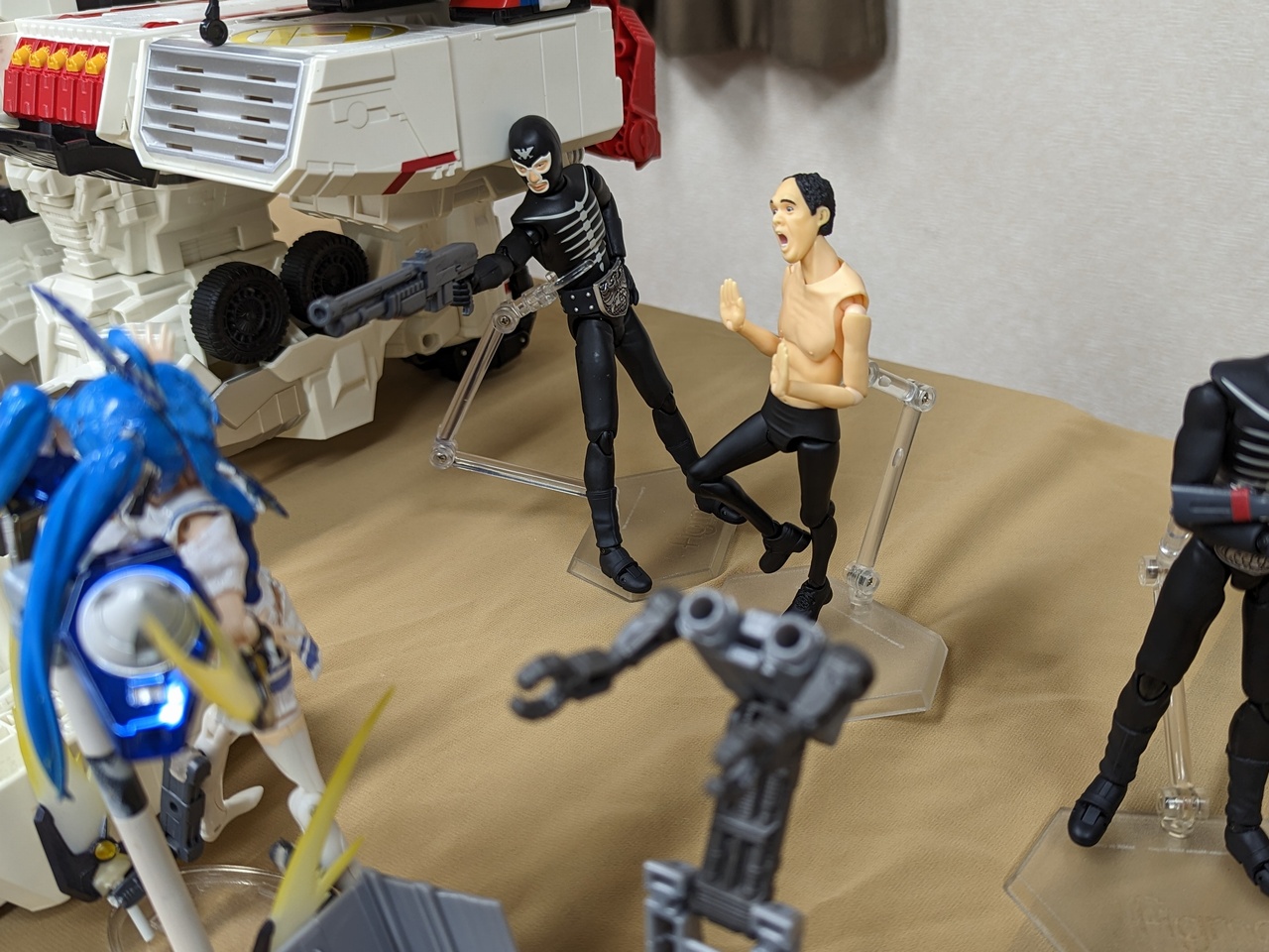 ちょうど、コンボイとメガトロンがいるので、今回はサイバトロンvsデストロンとなりました。